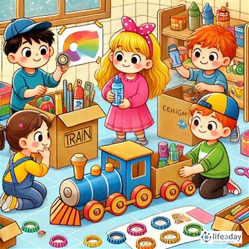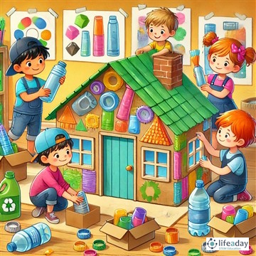 - การใช้วัสดุเหลือใช้ในบ้าน เช่น ขวดน้ำ กล่องกระดาษ หรือฝาขวดในการสร้างสิ่งประดิษฐ์ที่สร้างสรรค์
