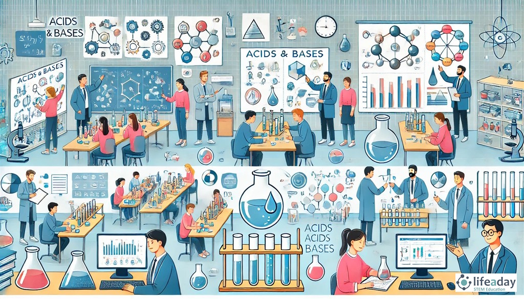 นักเรียนได้รับมอบหมายให้ศึกษาและทดลองเกี่ยวกับผลกระทบของกรดและเบสต่อวัสดุต่าง ๆ เช่น โลหะ พลาสติก และกระดาษ นักเรียนจะต้องทำการวิจัย ทดลอง และสรุปผลเพื่อทำความเข้าใจว่ากรดและเบสมีผลต่อวัสดุแต่ละชนิดอย่างไร