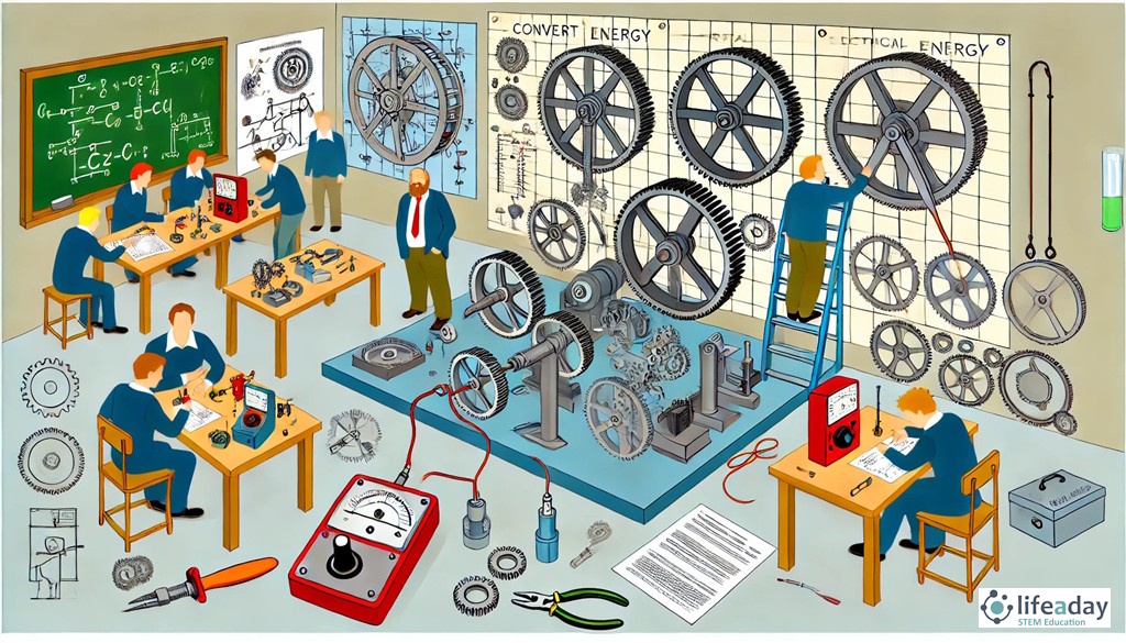 - การศึกษาหลักการทำงานของเครื่องกล: ศึกษาหลักการทำงานของเครื่องกล เช่น การทำงานของไดนาโมและเฟืองในการเปลี่ยนพลังงาน
