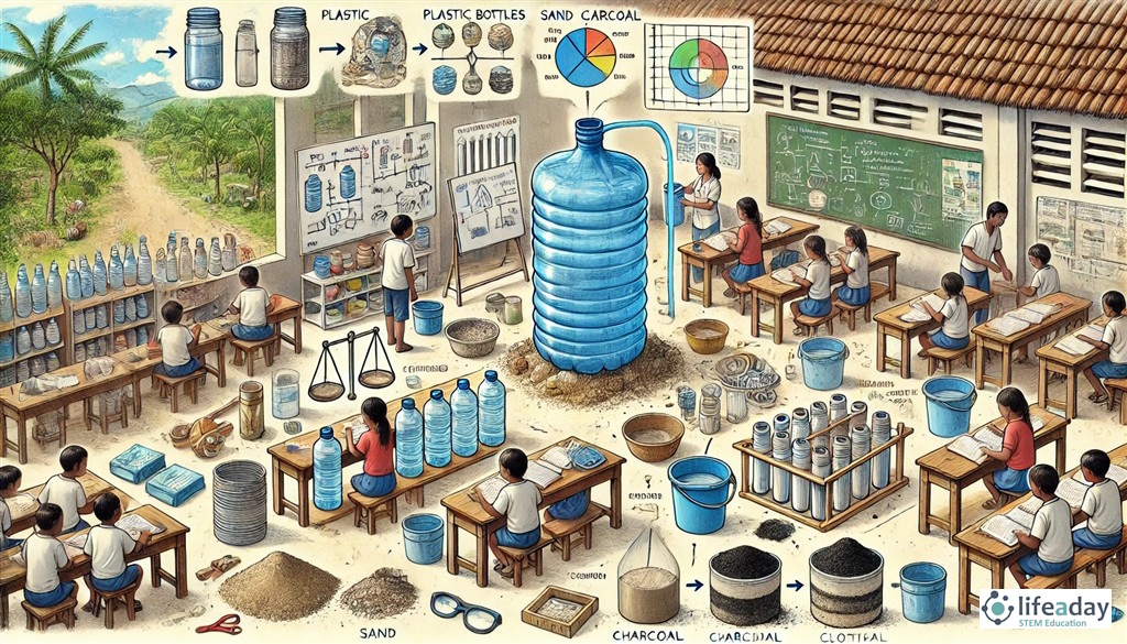 - การสร้างเครื่องกรองน้ำ: วางแผนและสร้างเครื่องกรองน้ำจากวัสดุที่มีอยู่ในบ้าน เช่น การตัดขวดพลาสติกและใส่วัสดุกรองน้ำในขวด