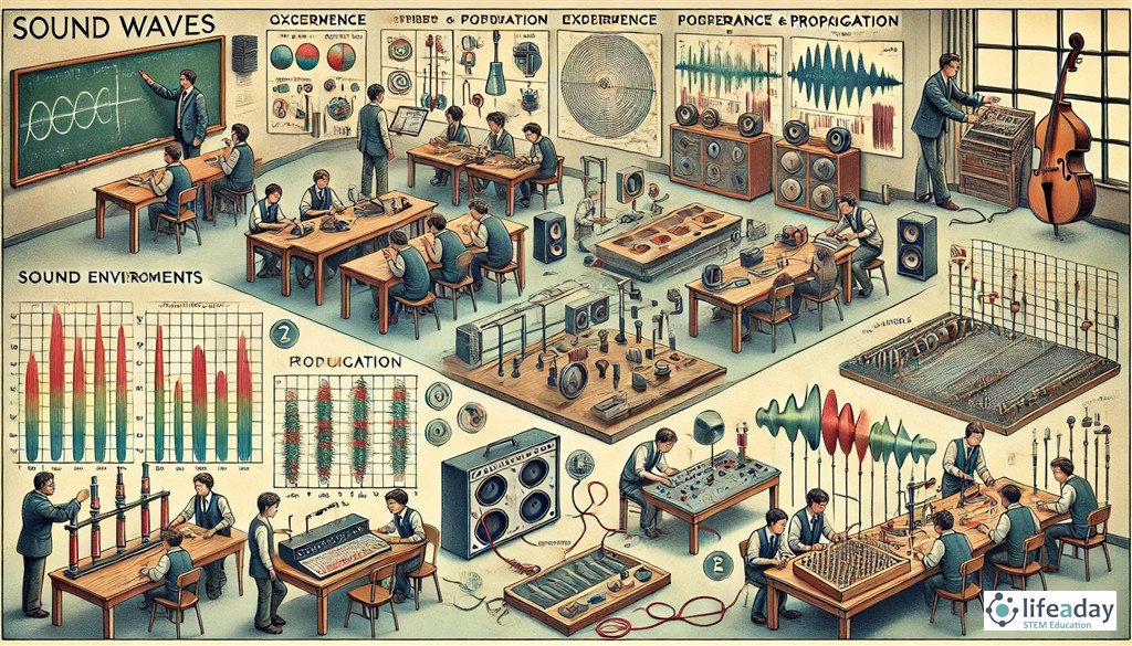 - การทดลองและสรุปผล: ทดลองการเกิดและการแพร่กระจายของคลื่นเสียงในสภาพแวดล้อมต่าง ๆ และสรุปผลการทดลอง เช่น การวัดความเร็วและความถี่ของคลื่นเสียงในวัสดุต่าง ๆ และการเปรียบเทียบผลลัพธ์